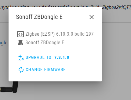 Mise a jour Dongle Type E avec Z2M depuis V1.37.0