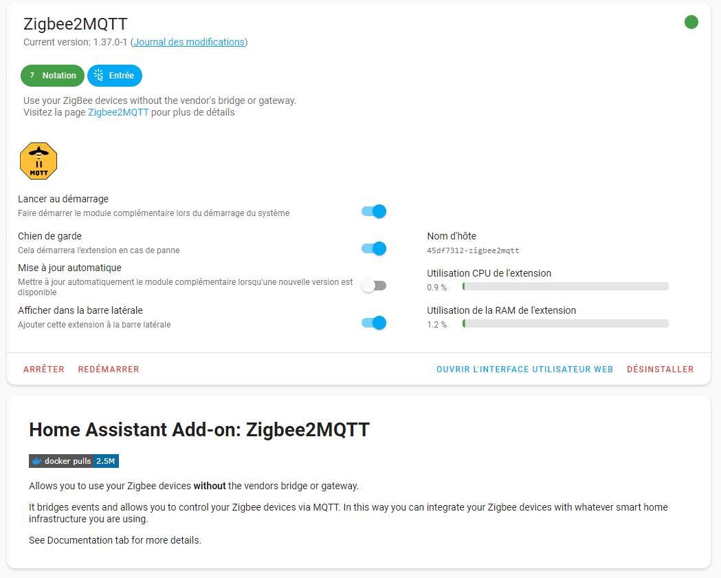 - Arrêt du module complémentaire zigbee2mqtt (Z2M)