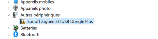 - Sous Windows, il peut arriver que le driver installé soit générique et votre dongle Sonoff pas reconnu.
