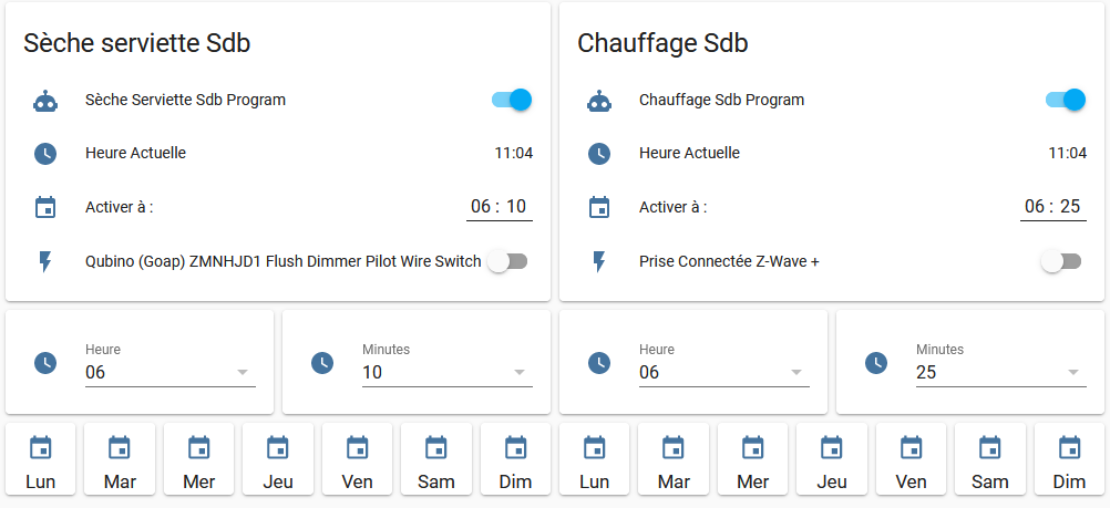 Petite suggestion pour la carte « Activé à » et Heures / Minutes, pourquoi ne pas avoir utilisé un input_datetime ?