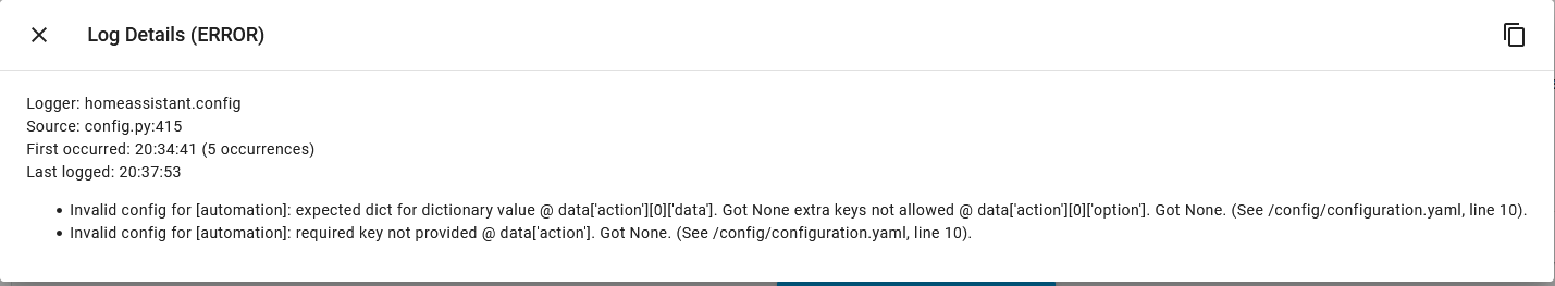 Le problème c’est que mon configuration.yaml est valide d’après HA mais je me prends une erreur