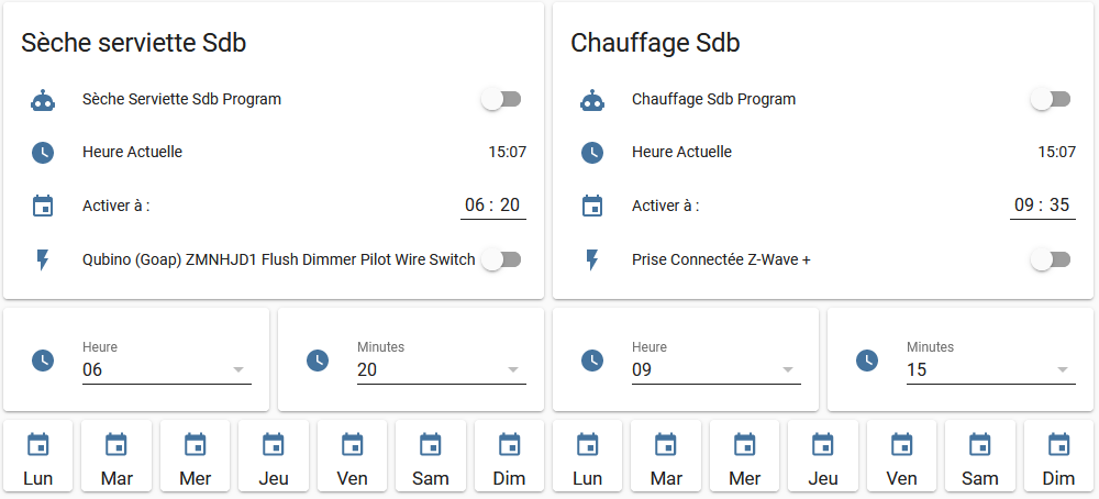 Après si le bouton du jour n’est pas activé, l’automation du chauffage, même si l’heure est bien réglée, ne se fait pas !