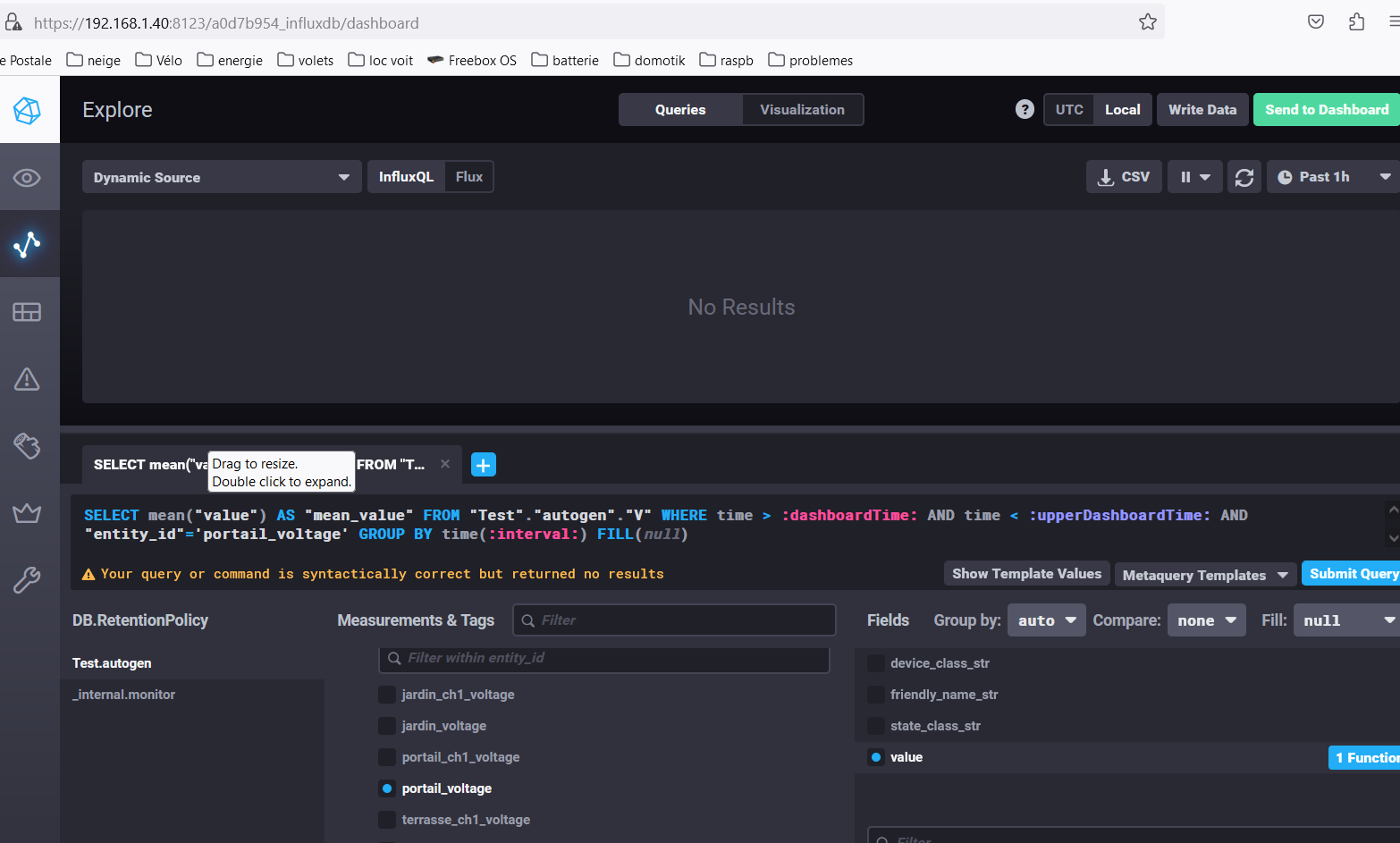 je n’arrive pas à récupérer mes données dans Influxdb. J’ai essayé de lire les tutos mais je n’arrive pas à trouver mon erreur.