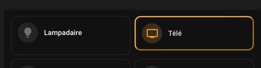 je cherche donc soit à réduire la hauteur de ma carte « Lampadaire » pour la remettre comme les autres, soit j’arrive à centrer en hauteur mon icône et le libellé, et dans ce cas je fais pareil sur les autres cartes.