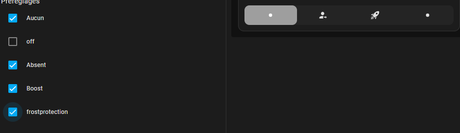C’est une limitation de la carte thermostat, il y’a quelques modes codés en dur mais rien qui ne correspond à « Hors-Gel ». Il faudrait faire une PR du côté de Home Assistant pour rajouter un label et une icône, mais ça a l’air très spécifique au fil pilote français, pas sûr que ce soit accepté.