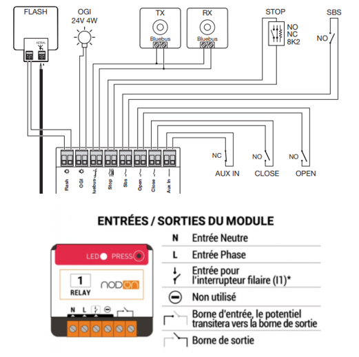 Y’a-t-il une possibilité de contrôler la motorisation avec un relais multifonction à contact sec de type NODON SIN-4-1-20 ? Si oui, pouvez-vous m’aider sur le branchement à effectuer ?