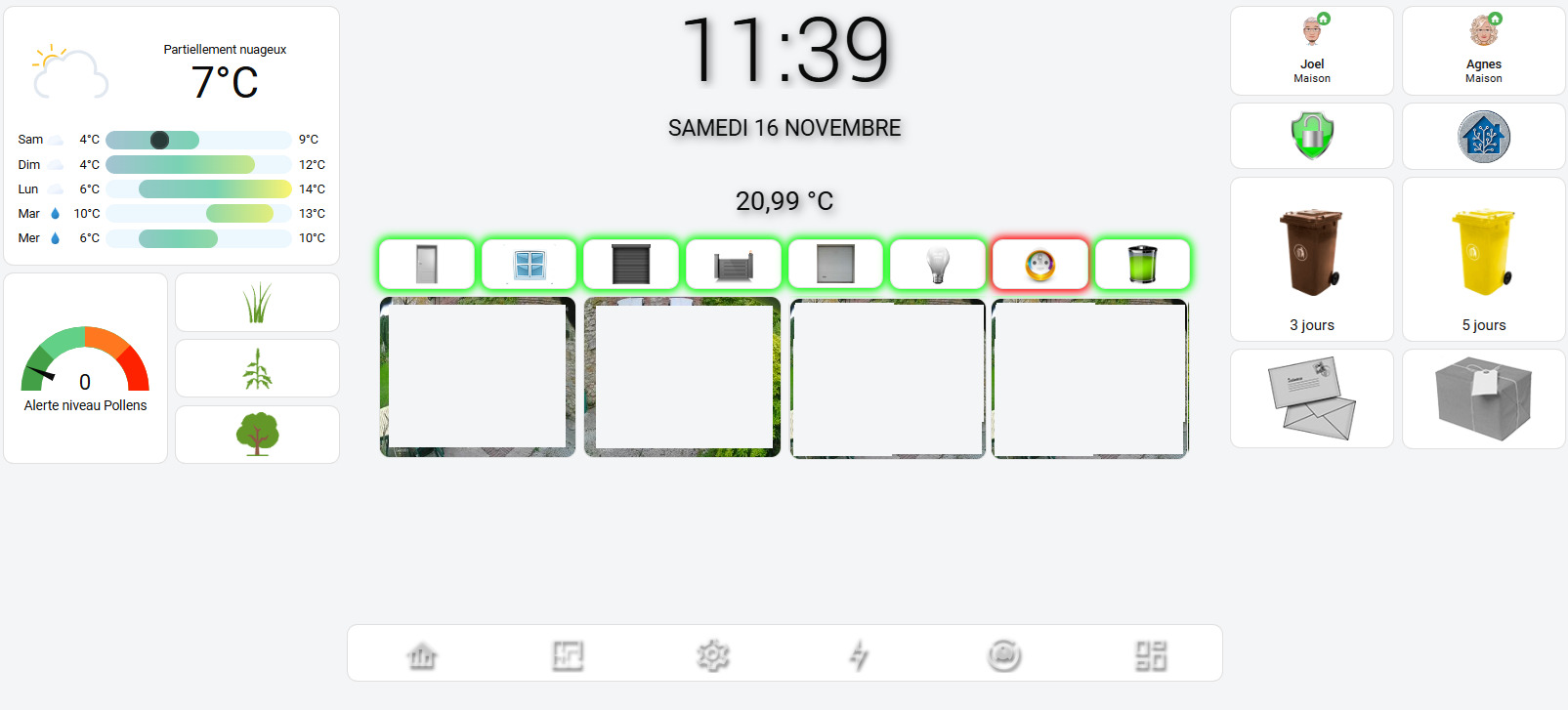 sur toutes es pages, toutes les icones ont tous été remplacés par des images, ce qui rend les dashboards plus sympas a mes yeux, et elles changent de couleur s’il y a une action a faire comme par exemple l’icone de HA qui passe du bleu au rouge s’il y a une maj, le courrier du gris a la couleur, etc.