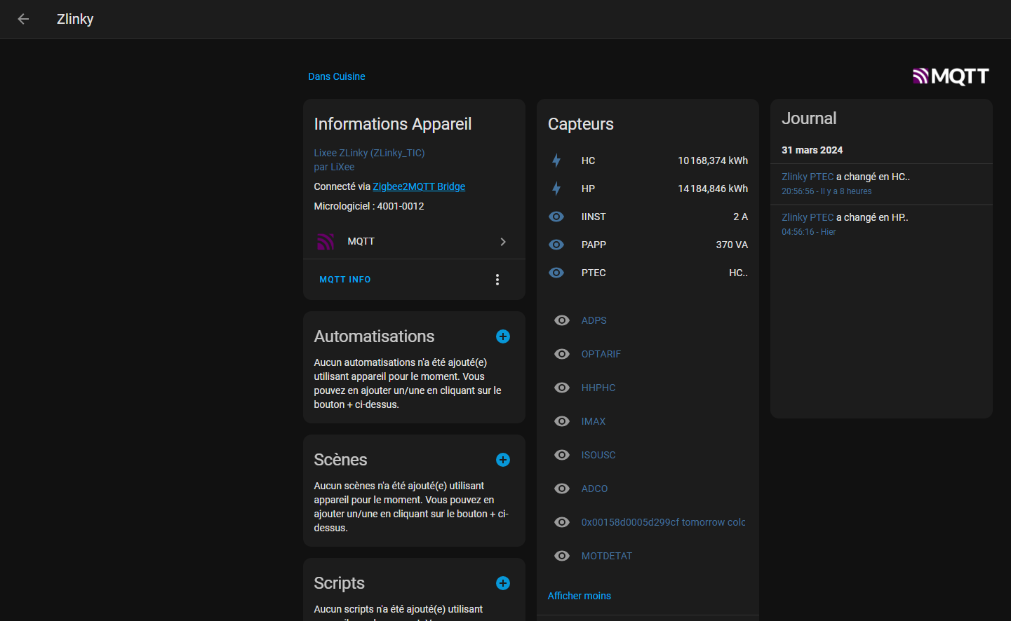 La finalité de mon souhait est d’avoir l’attribut indiquant Heure creuse ou Heure pleine pour mettre en route certains appareils à l’aide des prises connectées. La seule exploitable est Tier 1 qui correspond aux heures creuses et Tiers 2 aux heures pleines.