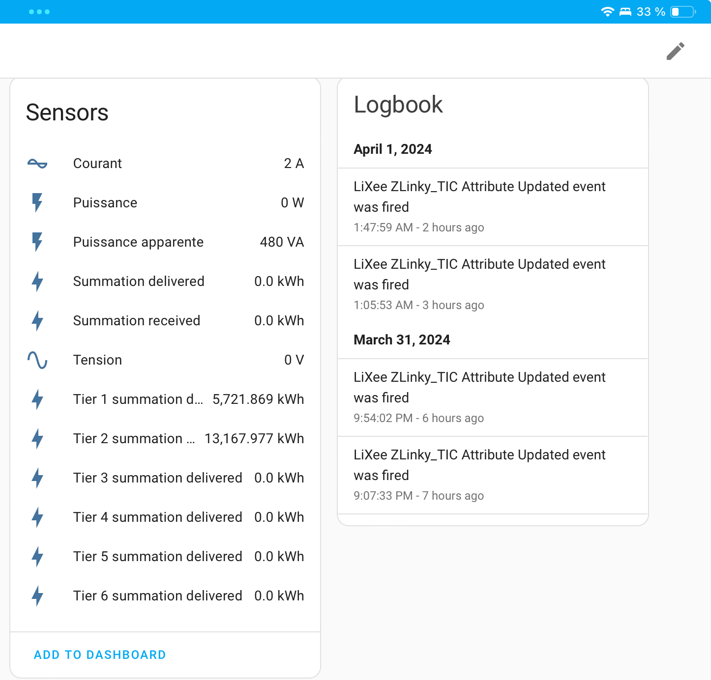 LiXee ZLinky_TIC Attribute Updated event was fired