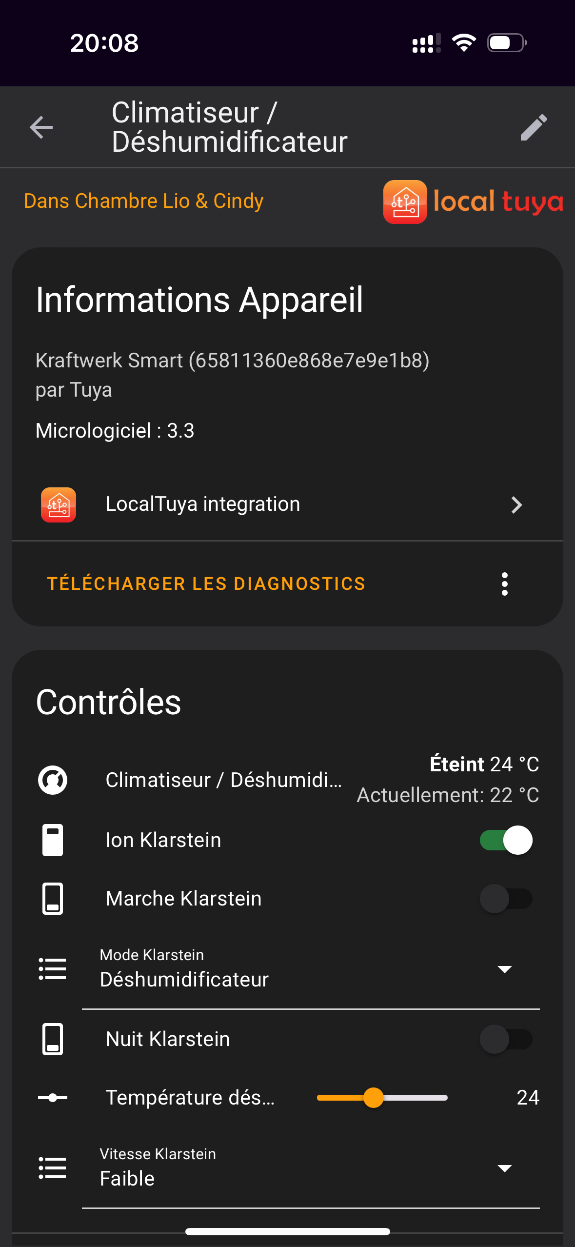 A tout hasard, puisque tu as exactement la même clim, pourrais-tu m’envoyer tes clés de correspondances dans local Tuya ? Ou me guider pour les configurer ?