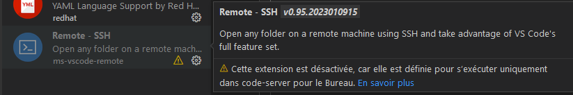 J’ai bien essayé ensuite d’insataller l’extension VSIX « Remote - SSH » qui semblait répondre au besoin :