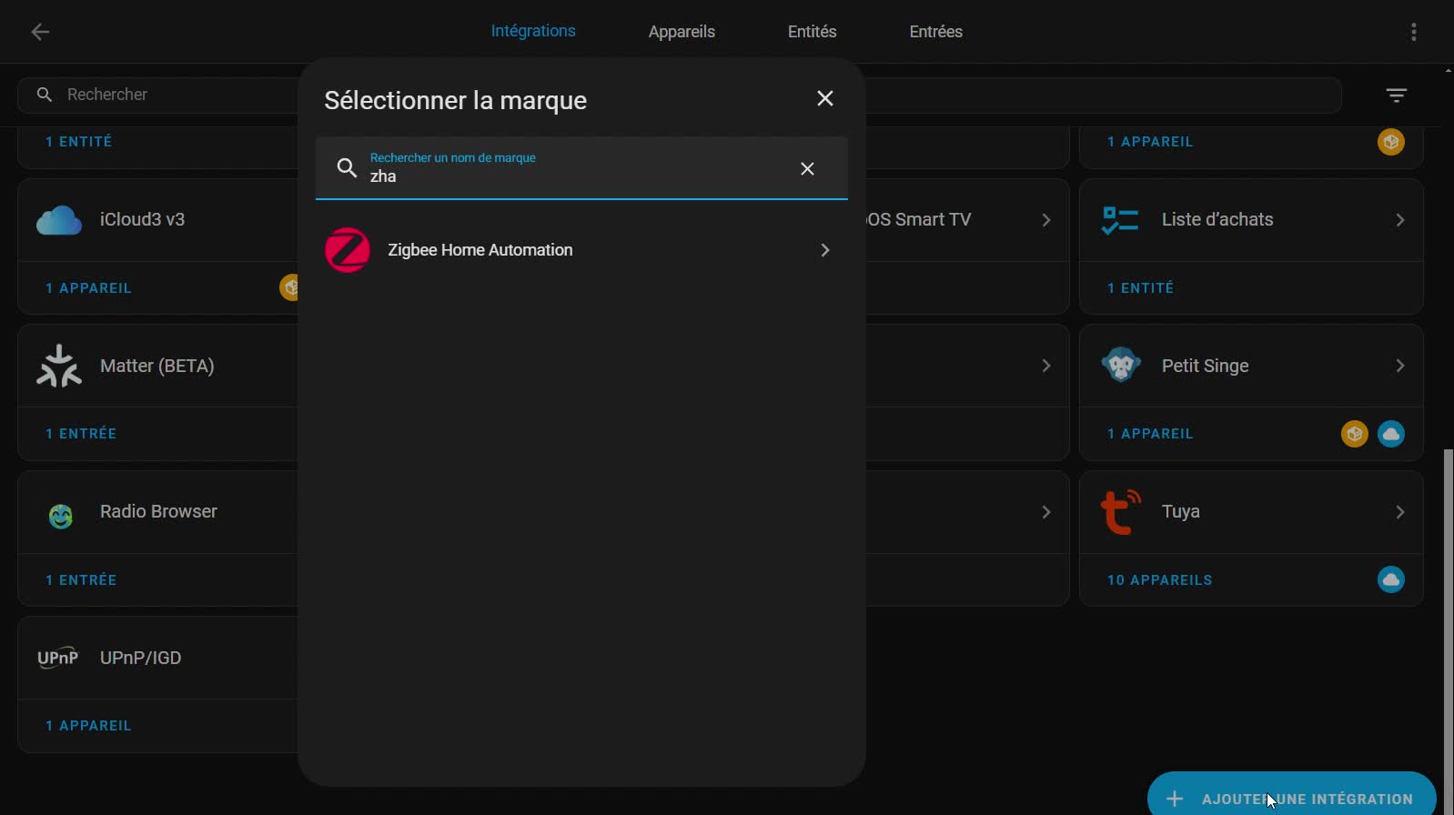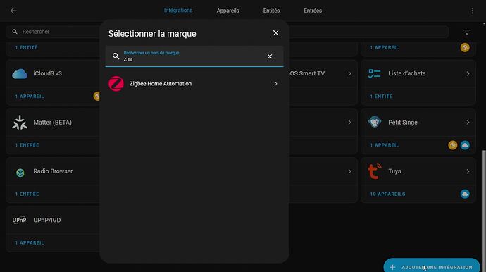 dans la page des intégrations ZHA traine encore dans les (tout en haut) su tu cliques sur configure ?