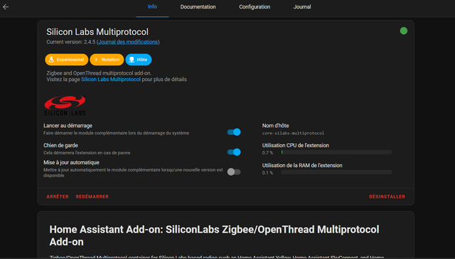 Ton module complémentaire Silicon Labs Multiprotocol n’est pas démarré donc ça ne peut pas fonctionner