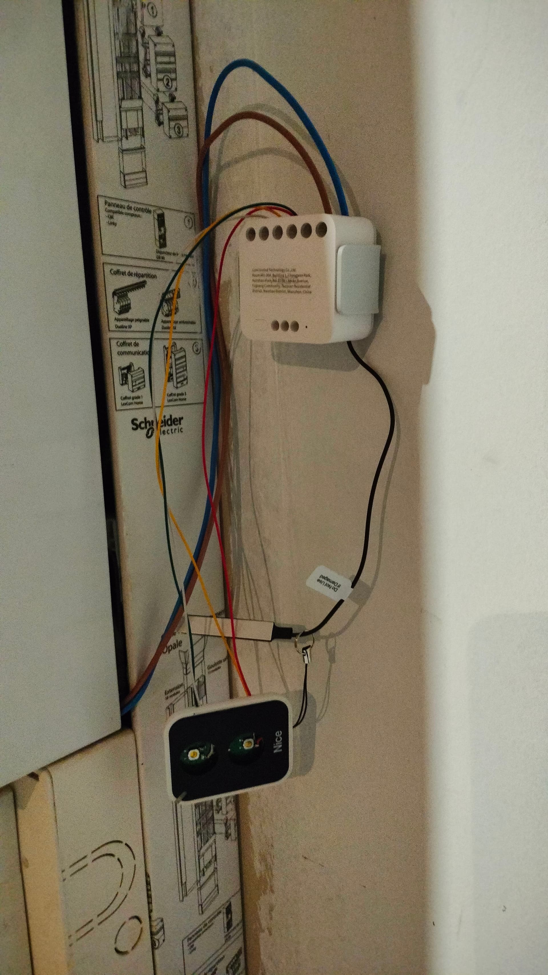 J’ai donc le même type de moteur de portail (came) et quasi le même branchement disponible qui sert à allumer normalement une lumière lorsque le portail est ouvert.