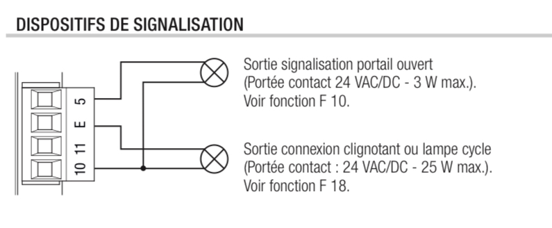 Non actuellement rien n’est branché sur ces bornes. Par contre juste à côté j’ai la lumière qui est à l’extérieur et qui clignote lorsque le portail est en mouvement.