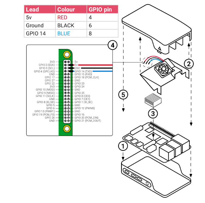 Oui c’est ça j’ai branché sur le port 14 en faite (mon ventirad possède 4 fils - un neutre - un 5 volts attention en fonction des ventirads mais souvent c’est 5V - un fils de commande branché sur le port gpio 14.