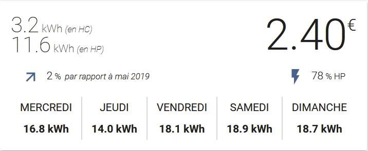 Hello, maintenant que l’on a les « utility_meter », on peut certainement refaire fonctionner cette custom card linky qui a d’ailleurs été forkée pour l’API enedis provisoire !