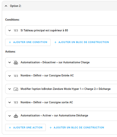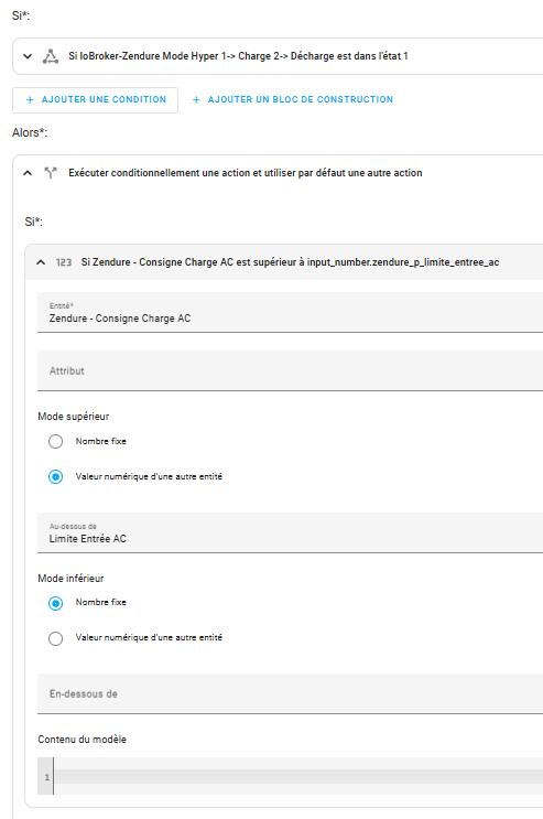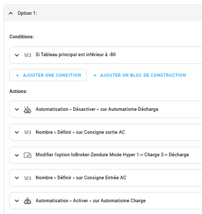 J’ai également créé une entrée « limite de décharge » pour brider la décharge à une valeur max si nécessaire :
