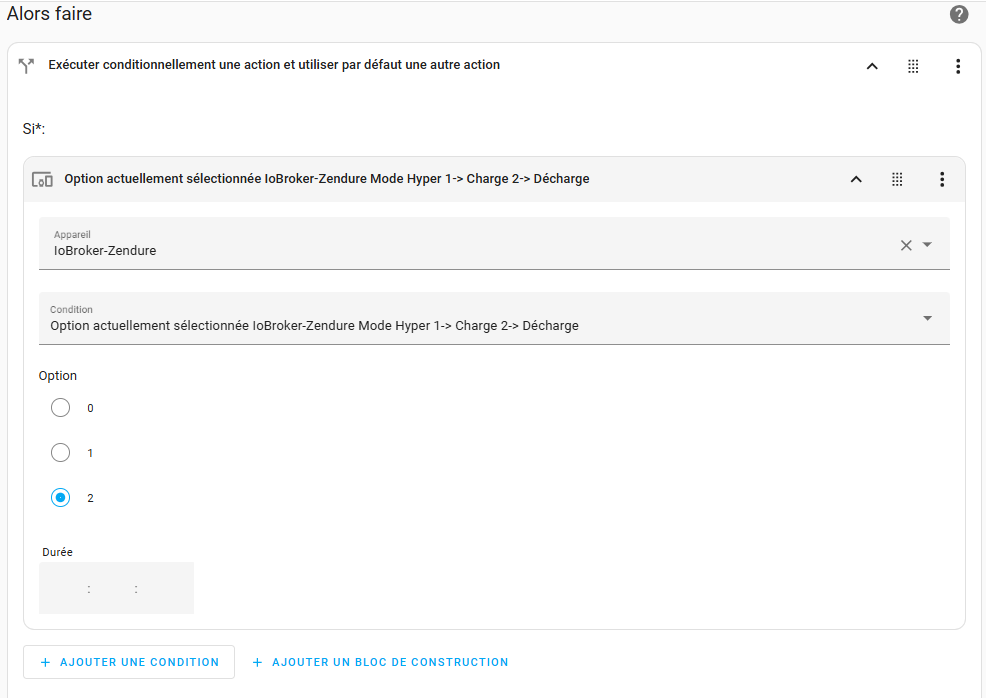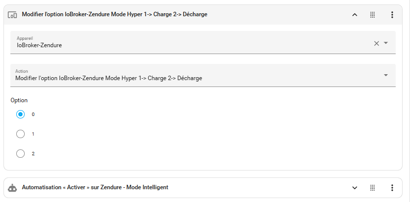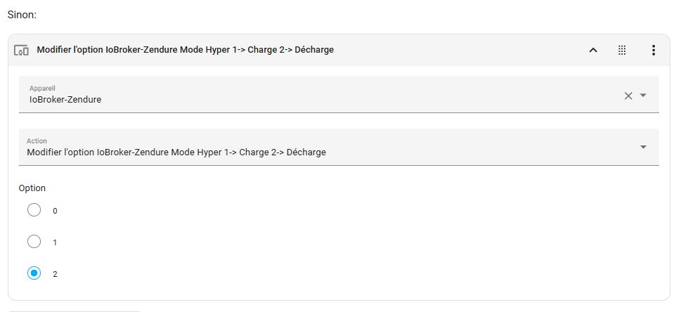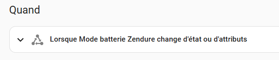 Je déclenche sur un changement d’état du sélecteur « Mode batterie Zendure » :