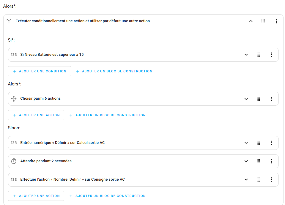 - Un 1er SI-Alors vérifie que l’hyper est bien en mode charge (AC mode=1), le SINON modifie l’AC mode à 1 si besoin