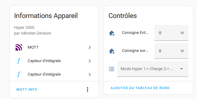 J’utilise la méthode du broker externe « ioBroker » (je sais qu’il y a une autre méthode que je n’ai pas testé personnellement), qui a l’avantage d’être très réactive et de permettre le contrôle de l’Hyper 2000 en écriture.