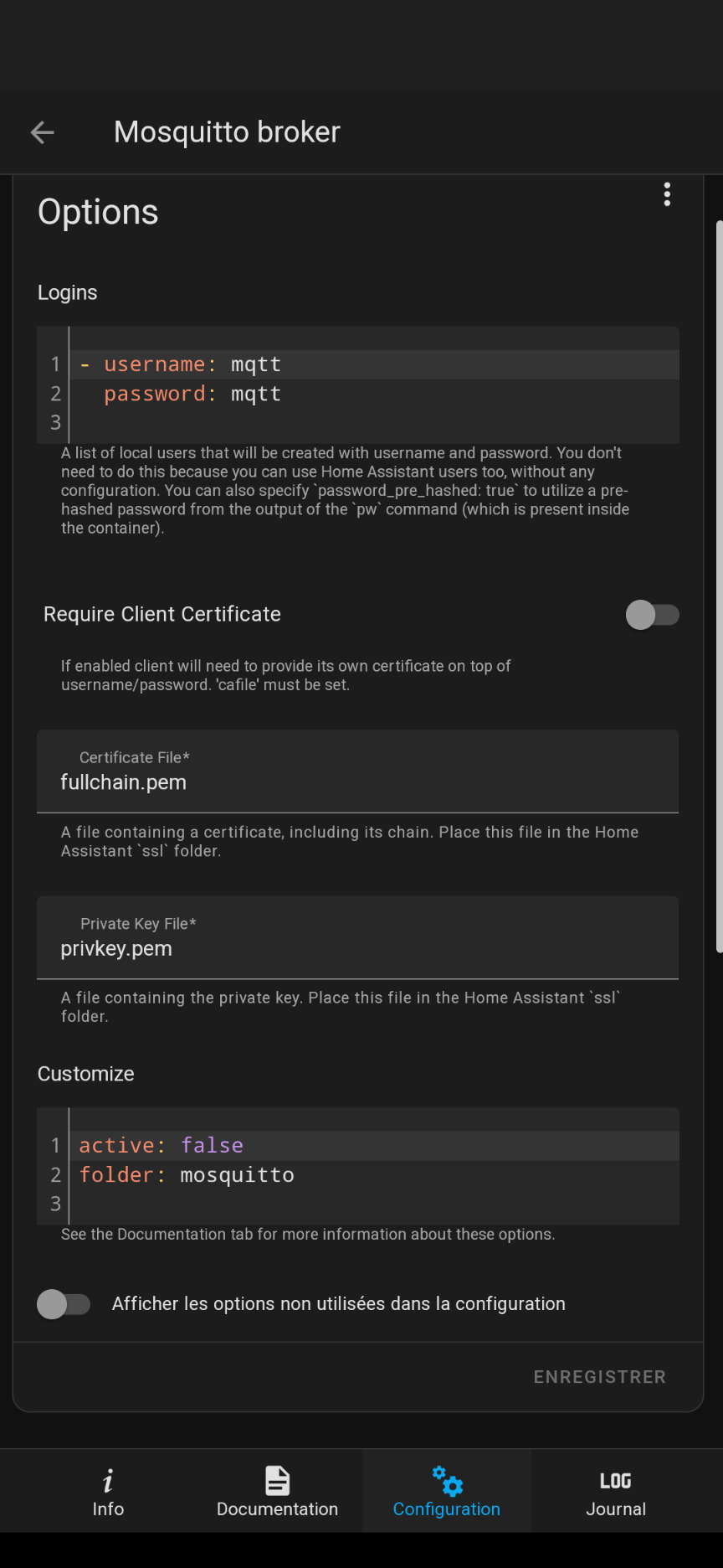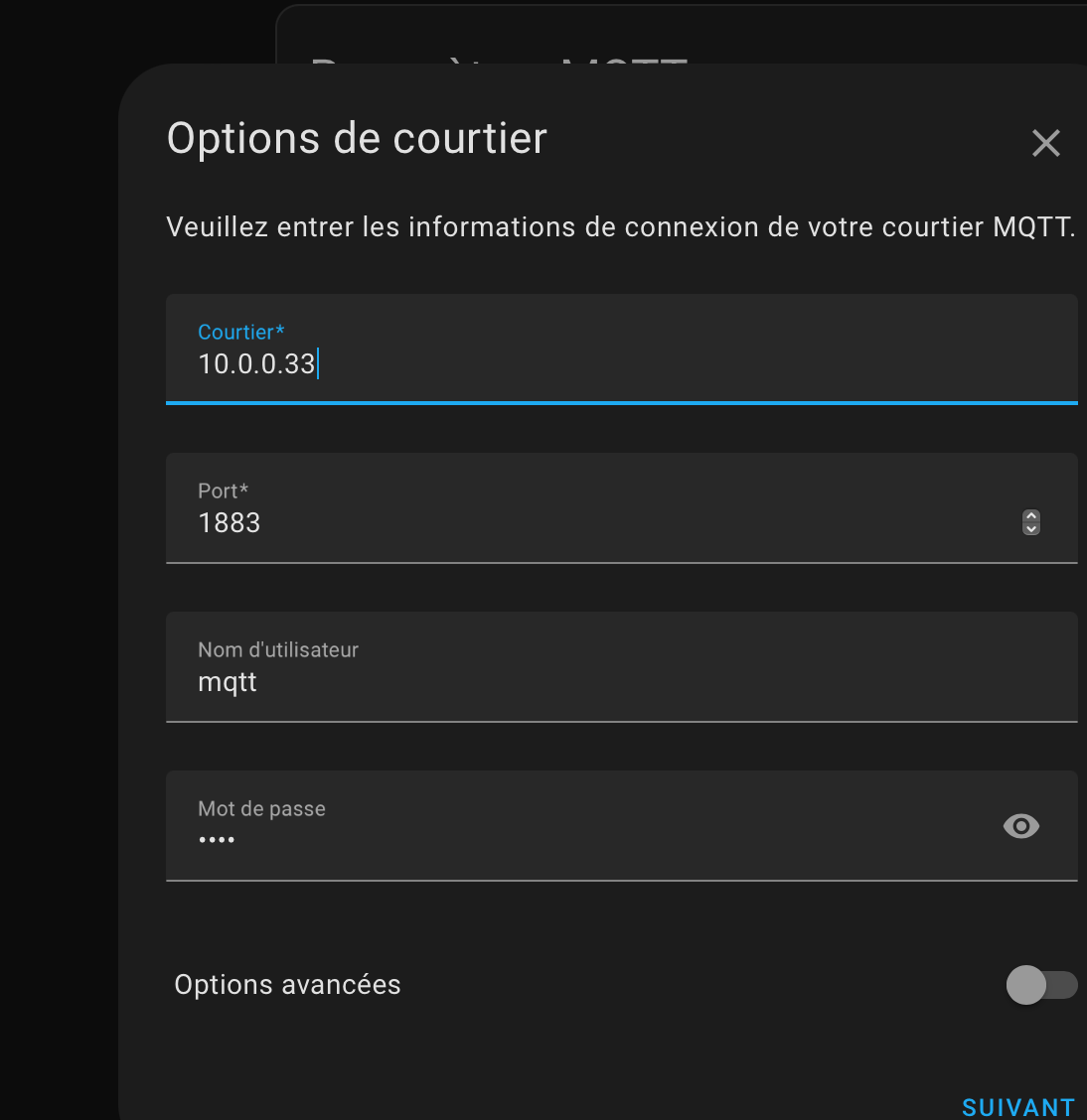 mosquitto a l’air content. dans le panneau integration de mosquitto j’ai mis cela
