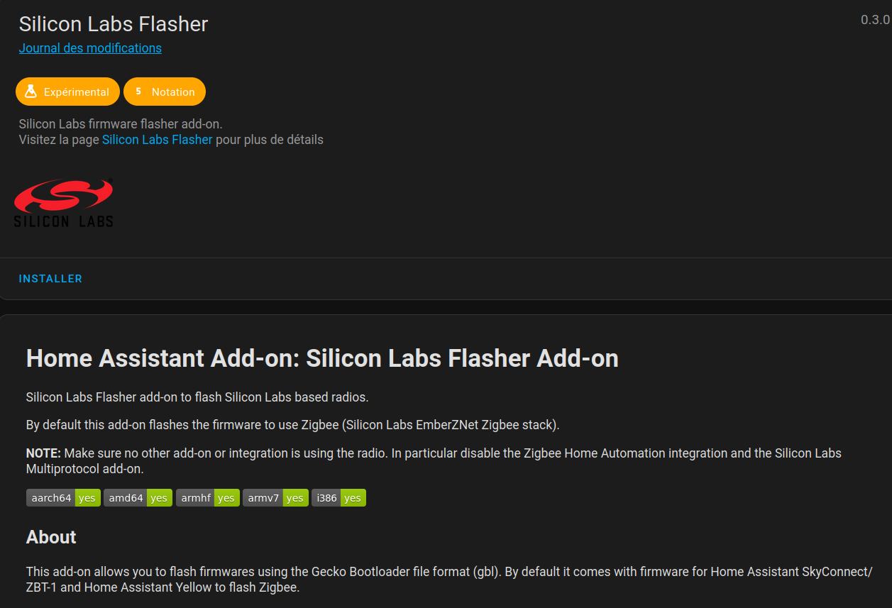 This add-on allows you to flash firmwares using the Gecko Bootloader file format (gbl). By default it comes with firmware for Home Assistant SkyConnect/ZBT-1 and Home Assistant Yellow to flash Zigbee