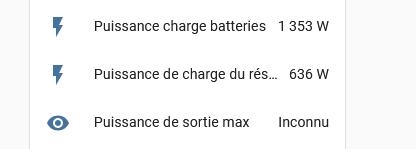 Bonjour, les valeurs remontent dans HA que sur changement d’état. Ce qui explique que tu auras souvent des valeurs inconnues quand tu recharges ta configuration yaml. Pour tester les données associées a la décharge, le mieux est de lancer une décharge manuellement et d’attendre que les données remontent. Penses aussi à mettre des valeurs par défaut dans tes configurations, pour éviter les inconnues, car c’est souvent bloquant pour les automatisations. Par exemple pour le niveau de charge batterie, je considère qu’il est a 50% s’il est inconnu, en attendant que la vraie valeur remonte.